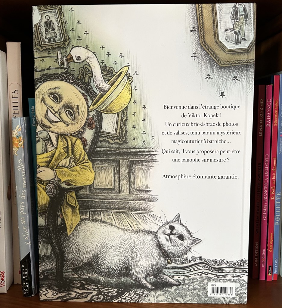 Approchez Mesdames et Messieurs. L’étrange boutique de Viktor Kopek n’attend plus que vous. Dans ces pages à la parenté criante avec Lewis Carroll, point de lapin blanc, mais un matou taquin qui apparaît et disparaît au gré des portes secrètes et valisettes qui jonchent les lieux. Ma passion pour Alice et le pays merveilleux n’étant plus à démontrer (j’en parle un peu par ici : Passion Alice ), il est temps d’entrer dans cette surprenante et hétéroclite boutique.