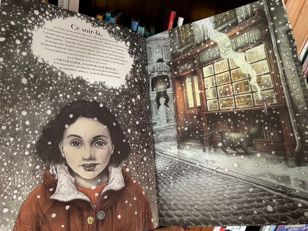 L’ouvrage est un grand format : merveilleux pour plonger dans cette boutique fantastique. Il me semble qu’il pose, en filigrane, une question d’importance : dans la vie, faut-il suivre les chemins tout tracés … ? S’en tenir aux recettes toutes prêtes, c’est faisable. Ça a quelque-chose de rassurant bien que conventionnel. Cependant… tout le monde s’y retrouve-t-il systématiquement ?