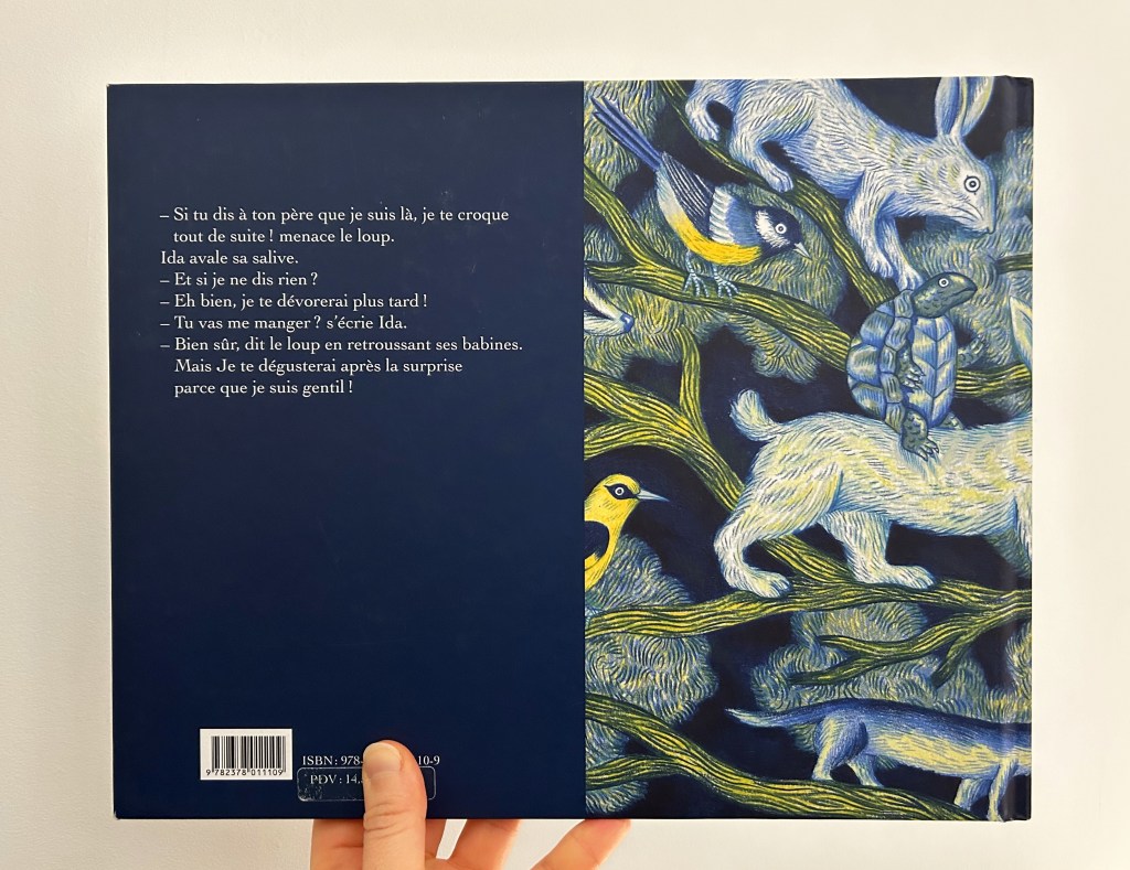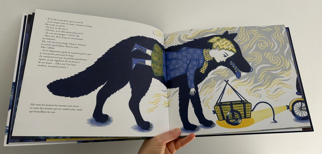 La nuit aiguise des sens que nous mettons en veille la journée. Tout semble décuplé, et d’autant plus difficile à discerner. La peur grandit, devient loup aux intentions évidentes : il veut dévorer l’enfant. Ida a peur. Ida est futée : et si elle gagnait du temps ? Si elle détournait son attention ? Le loup est rusé : il acquiesce pour mieux entourlouper. Comment faire pour lui échapper ?