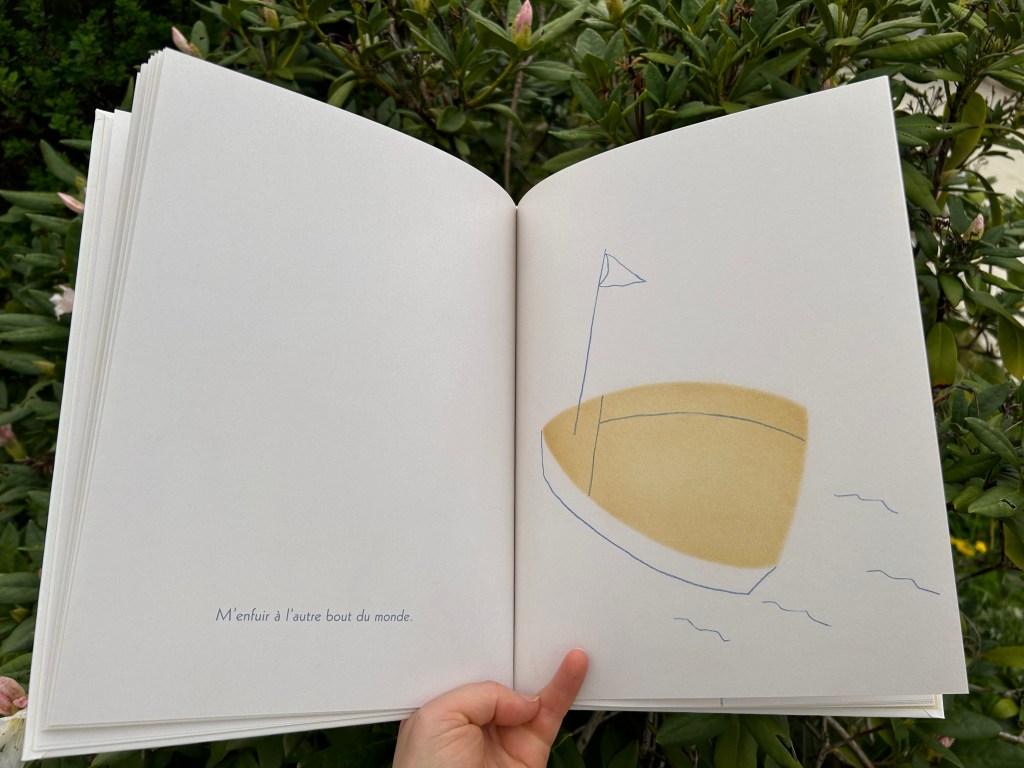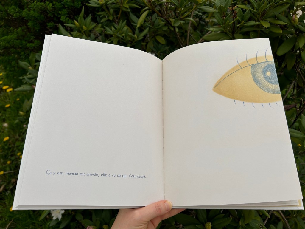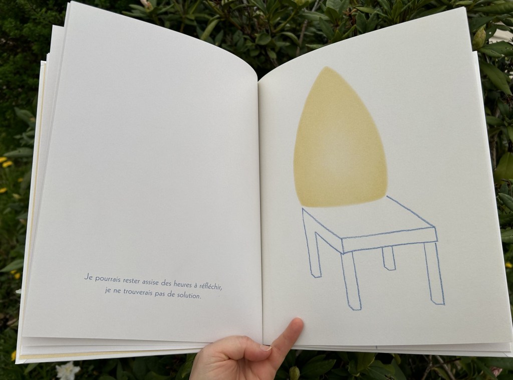 Dorénavant à côté des broderies délicates, il y a l’empreinte de l’appareil, comme une signature honteuse. La fillette imagine mille stratagèmes pour réparer son erreur. En vain. Mais de page en page, la tache terrible s’anime, se transforme au gré des hypothèses de l’enfant. Avec quelques traits bleus bien placés, Iwona Chmielewska esquisse avec subtilité un panel d’émotions qui, bien que tragiques pour l’enfant, ne manqueront pas de nous attendrir.