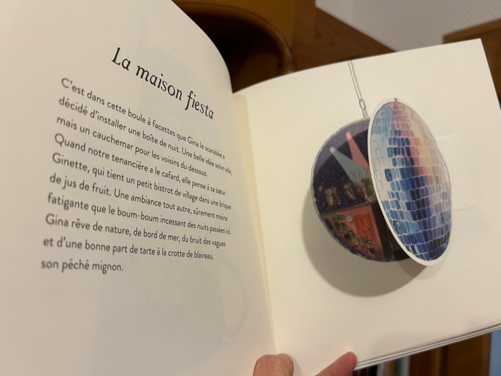 Sous son pinceau poétique, il suffit de soulever des flaps pour que le monde intimiste d’adorables insectes se dévoile. Les poux y sont cinéphiles, les scarabées enflamment le dance-floor et les bogues de châtaigne ou autres coquilles de noix deviennent de sympathiques baignoires !
