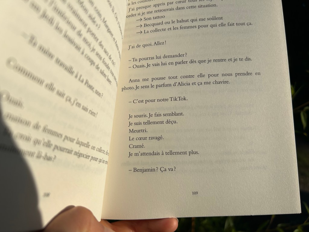 La vie de Benjamin rime avec une mère dans le gouffre du burn-out, un père qui roucoule en Argentine, un skate sur lequel il danse, les deux potes Enzo et Taieb, Djam la quasi frangine et des attaques de panique qui lui tombent régulièrement dessus. Parentalisé un tantinet trop tôt, Benjamin est écartelé entre des responsabilités vis-à-vis de sa mère et l’insouciance qui a foutu le camp. Le quotidien de lycéen pourrait s’avérer extrêmement inintéressant s’il n’y avait pas Alicia. Alicia qui est en première et qui ne calcule pas d’un iota Benja… lequel se consume sur pied dès qu’il l’aperçoit. Imaginez le drame intérieur quand Benjamin aperçoit Alicia dans le parc alors qu’il est en plein rencard foireux avec Laura.