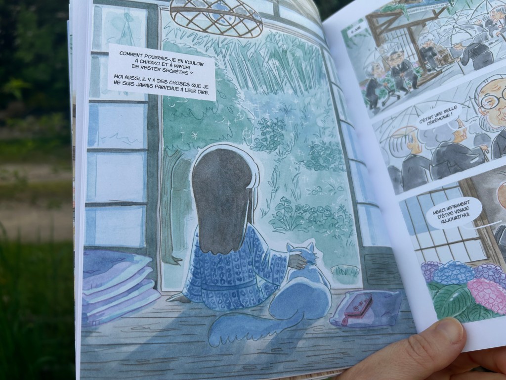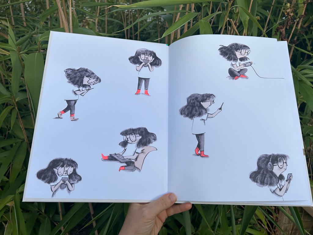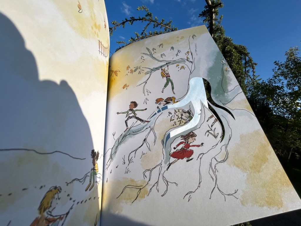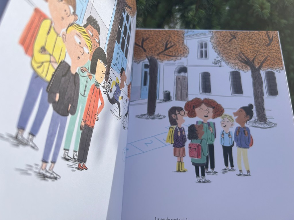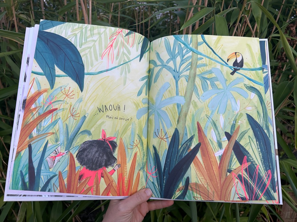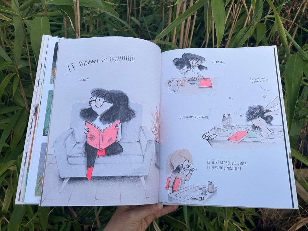 Pas la peine de se raconter une histoire qui fait peur sous les draps. Le monstre n’est pas sous le lit mais dans l’escalier. A quoi sert un corps sans tête ? On l’ignore et au fond, laissons le passé au passé. L’histoire écrite au présent invite à y rester et se ré-inventer. Le noir domine l’illustration mais c’est bien l’amitié, la grande lumière de ce conte !