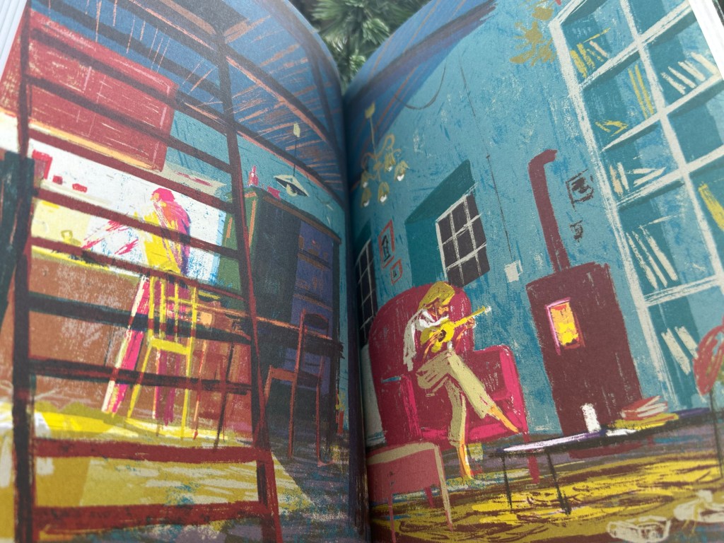 Ambiance sombre en somme pour une histoire qui pourrait sembler lugubre mais qui révèle une étrange chaleur et un humour bien décalé. L’amitié fait fi des apparences, des limitations, qui se joue de l’impossible et de l’effrayant. Jon Klassen réinvente un conte tyrolien où tout est oxymore : cette drôle d’amitié entre la mort et la vie, la chaleur intérieure contrastant avec le glacial du dehors, le passé muet et un présent loquace.